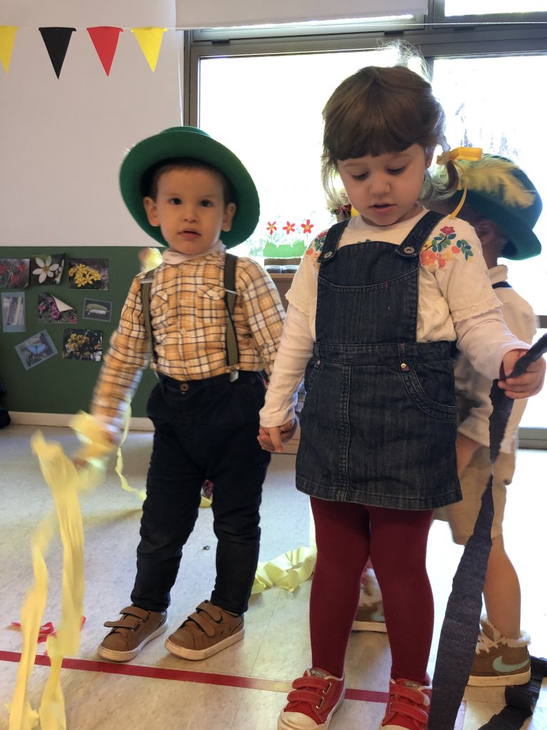 El viernes 1º de octubre los chicos de la sala de Lulu y Jessi vinieron vestidos con trajes típicos alemanes para festejar la Semana Alemana. Disfrutaron escuchando y bailando diferentes canciones tradicionales. También tuvieron la oportunidad de explorar los colores de la bandera alemana.