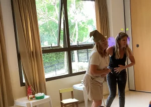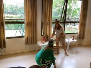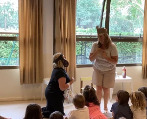 Con el fin de convocar a los alumnos y alumnas a formar parte de un mundo mágico, las maestras de las salas de 3 de Kindergarten crearon la siguiente obra de teatro: “Der Osterhase ist Krank” (El conejo de Pascua está enfermo).