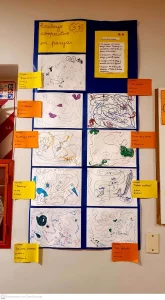 Todo nuestro crecimiento, compromiso y motivación se ve reflejado en las aulas. Por ejemplo Gabriela Machado y Viviana Domínguez, maestras de Primaria animaron a sus alumnos a dibujar en parejas siguiendo líneas y armaron una obra con título que hoy se puede ver expuesta en los pasillos del colegio. Un proceso enmarcado en la enseñanza de la Educación Sexual Integral y Prácticas del Lenguaje en el que los sentimientos, la creatividad, el compañerismo y la unión fueron los grandes protagonistas.