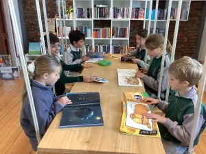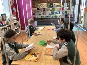Junto con los alumnos y alumnas de 4° año visitamos la librería Dulcinea, donde escuchamos cuentos narrados y viajamos por diferentes espacios de la librería. Además disfrutamos de muchas historias contadas.