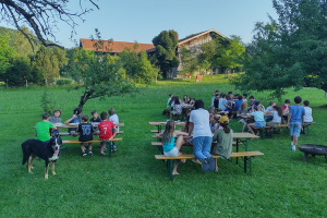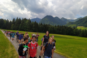 Schließlich erreichten wir den Sonnenhof, unser neues Zuhause bis zum 5. August. Dort erwarteten uns schon einige Schülerinnen und Schüler unserer Gruppe, die von ihren Eltern begleitet angereist waren. Nun waren die 47 Schülerinnen und Schüler und sieben Lehrkräfte endlich vollzählig da!