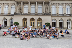 Am nächsten Tag begann das Abenteuer: Wir gingen in ein Schwimmbad am Ufer des Chiemsees und fuhren dann mit dem Boot zur Herreninsel, wo wir das Schloss Herrenchiemsee besichtigten. Der Sonntag war sehr sonnig und die Kinder haben den Tag im Sonnenhof genossen. Montag war der erste Schultag. Wir kamen am Annette-Kolb-Gymnasium in Traunstein an und wurden von den Schülerinnen und Schülern der 6. Klasse begrüßt. Unsere Gruppe stellte die Goethe-Schule in einer Präsentation auf Deutsch vor. Anschließend wurden wir in Grüppchen aufgeteilt und unsere Gastgeber zeigten uns ihre Schule, verbrachten mit uns die Pausen, ein besonderes Zusammentreffen, da es die letzte Schulwoche war. Am Nachmittag ging es dann in den Hochseilgarten, wo unsere Schülerinnen und Schüler im Wald kletterten und im See schwammen. Am nächsten Tag gingen wir wieder in die Schule und besuchten das Naturkunde- und Mammut- Museum von Siegsdorf. Der Mittwoch begann mit einer Führung durch Traunstein und einer Rallye, bei der die Teilnehmer verschiedene Challenges auf der Tour durch die Altstadt bewältigen mussten. Dann kam die erste Zugfahrt (ein Erfolg!) nach Rosenheim, wo wir die Ausstellung „Eiszeit“ besuchten und die Kinder auf eigene Faust durch die Einkaufsstraßen der Stadt bummeln konnten – eine ganz neue Erfahrung!