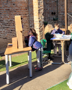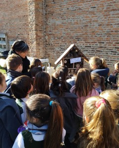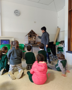 Antes de las vacaciones el grupo de 1° año de Primaria terminó el primer taller del año. Lo hicimos habiendo investigado e intercambiado muchos saberes. Una de las últimas experiencias fue instalar un: ¡hotel de insectos! Un día llegó a nuestro aula y la semana siguiente ya lo pudimos ir a visitar a la huerta. Nos preguntamos: si fuésemos un pequeño bicho, ¿qué parte elegiríamos para vivir?