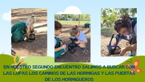 El taller de Bichos y Bichitos está de vuelta en 1º año de Primaria y salimos a investigar qué sucede con los insectos en este cambio de estación. Las hormigas siempre nos enseñan mucho. Ellas ahora se están preparando para el invierno. ¡Observando con nuestras lupas pudimos ver muchos más detalles!