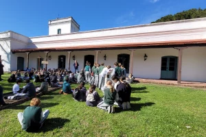 El hecho de estar en el sitio histórico de la Batalla de Caseros nos dio la oportunidad de sentir empatía con algo que está muy alejado de nuestra realidad y tomamos consciencia de la importancia que tuvo este hecho en el enfrentamiento entre unitarios y federales. Observamos la monumentalidad de los edificios, y por qué se eligió ese lugar. Un sitio elevado, un monte que fue llamado “Monte Caseros”, en donde pudimos observar, además, la Cañada de Morón. Allí, al final, a la altura de los árboles, vimos el arroyo Morón. Y desde esa elevación compartimos la vista que tuvieron los defensores aquél 3 de febrero de 1852.