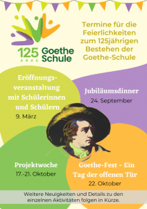 Von: Goethe-SchuleAm Donnerstag, dem 17. März, findet um 10.30 Uhr der Auftakt zu den Feierlichkeiten anlässlich des 125-jährigen