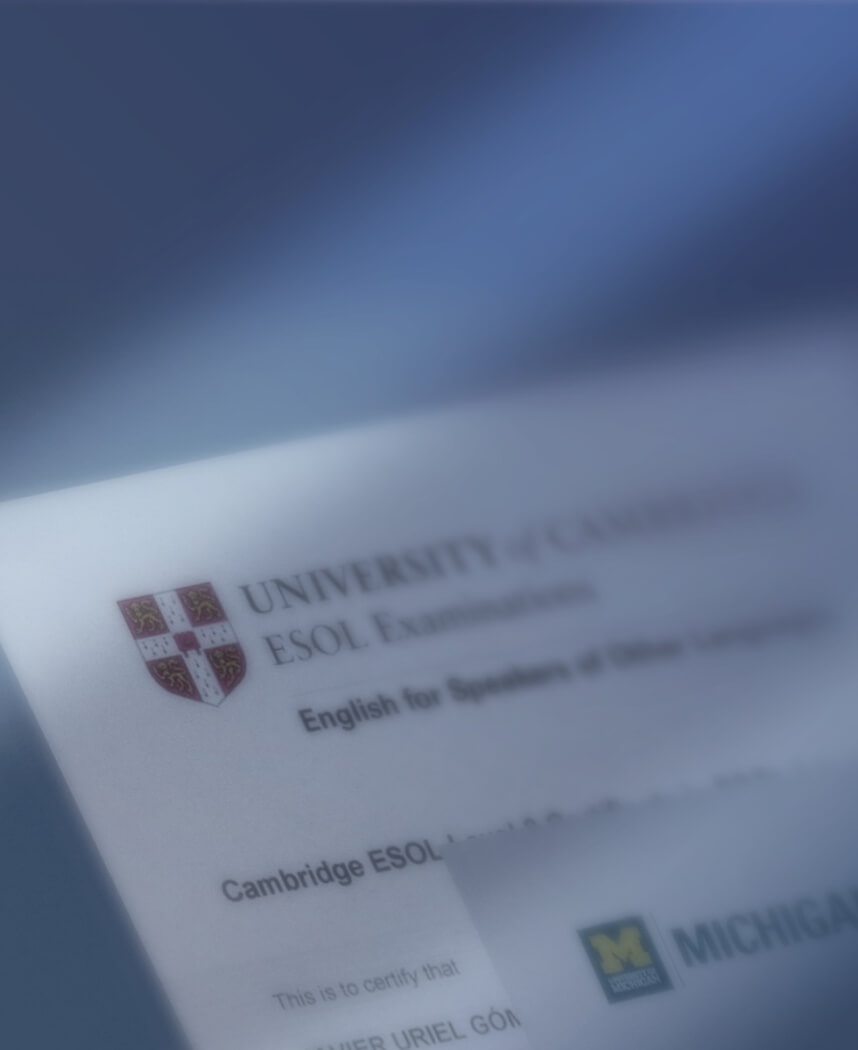 Acompañamos el aprendizaje de los alumnos y alumnas a través de la opción de rendir exámenes internacionales ofrecidos por la Universidad de Cambridge. Si bien hacia el final de los tres años la totalidad de los alumnos alcanza un nivel A1, según el Marco Común Europeo de Referencia, estos certificados visibilizan el nivel alcanzado por los estudiantes en sus primeros años de Inglés.