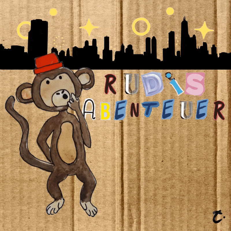 Rudi ist ein abenteulustiger Affe und manchmal auch etwas frech . In seinen Geschichten führt ihn seine Neugierde dazu, Dinge zu entdecken, und er schläft immer glücklich mit irgendeinem neuen Element ein.
